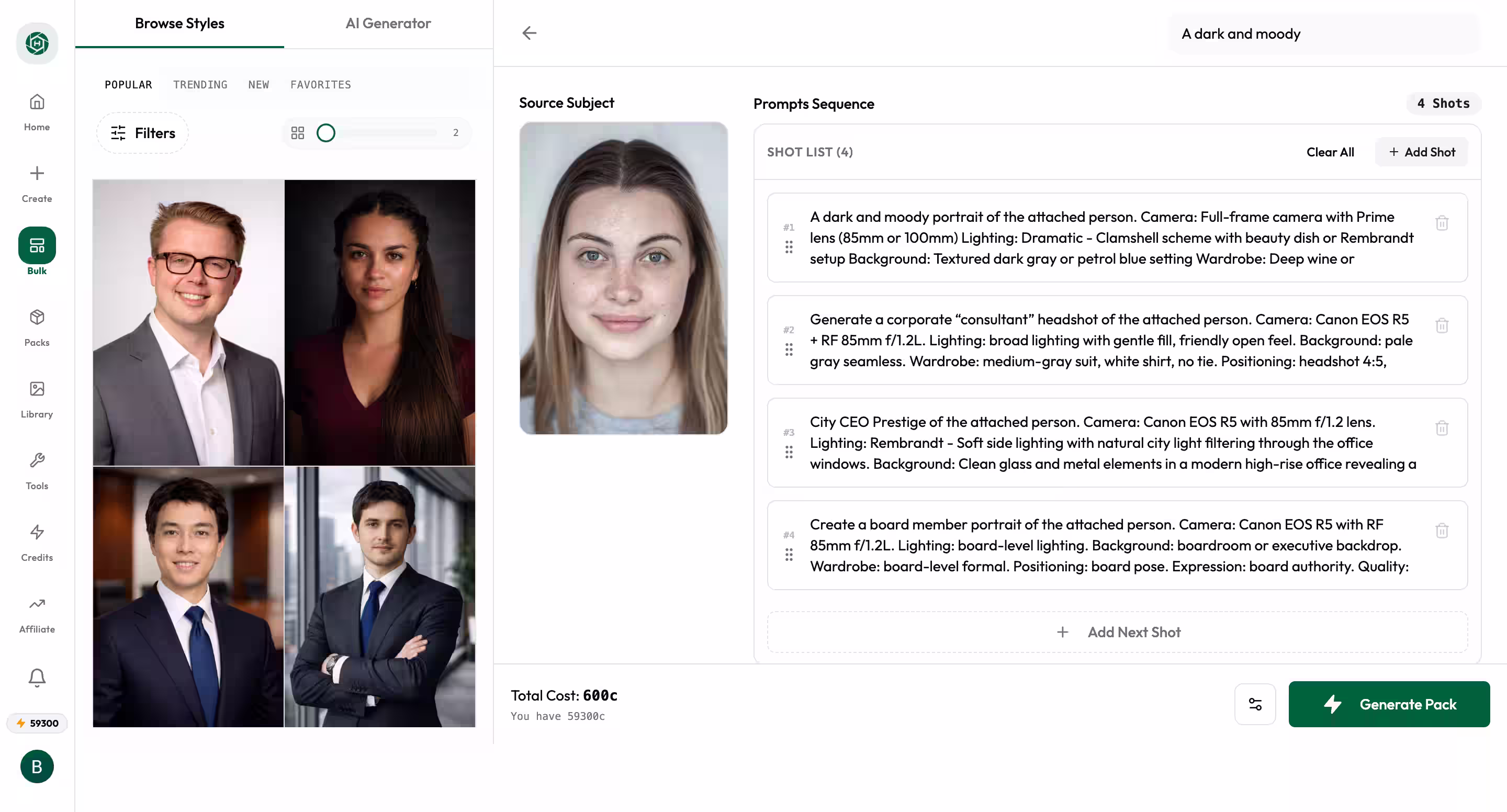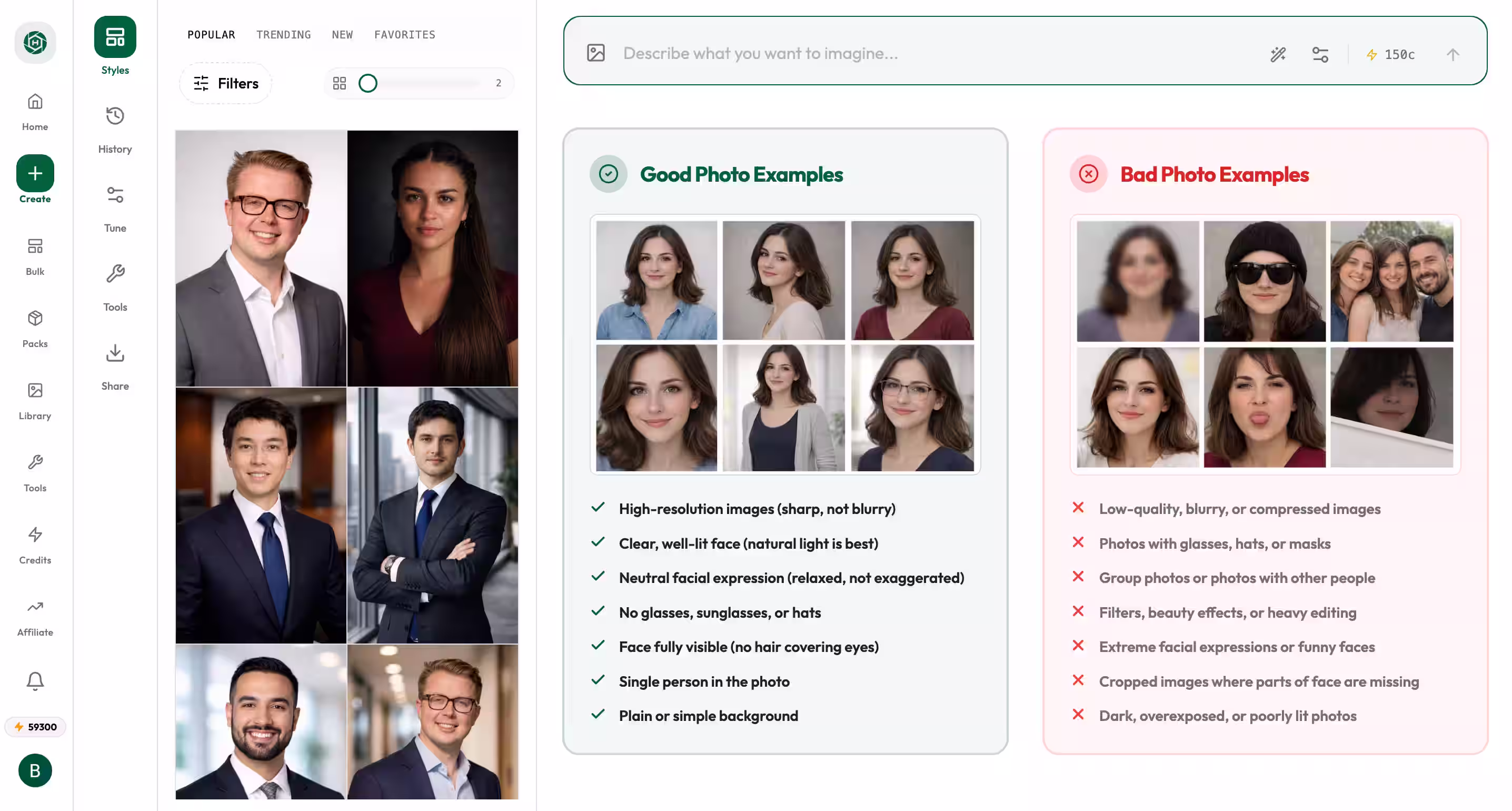 Choose up to 50 unified styles, or use Auto-Gen to create 20 variations per person.